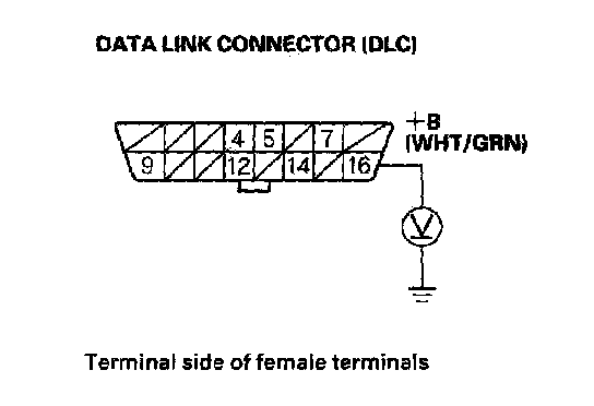 2. Measure voltage between DLC terminals No. 4 and No.16.