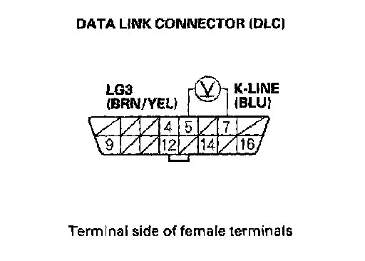 15. Measure voltage between DLC terminals No. 5 and No. 7.