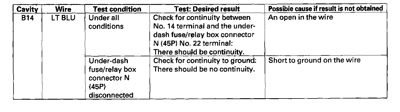 4. Reconnect the connector to the audio-HVAC display panel, and make these input tests at the connector.
