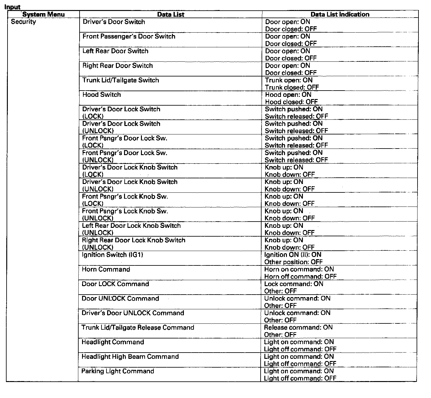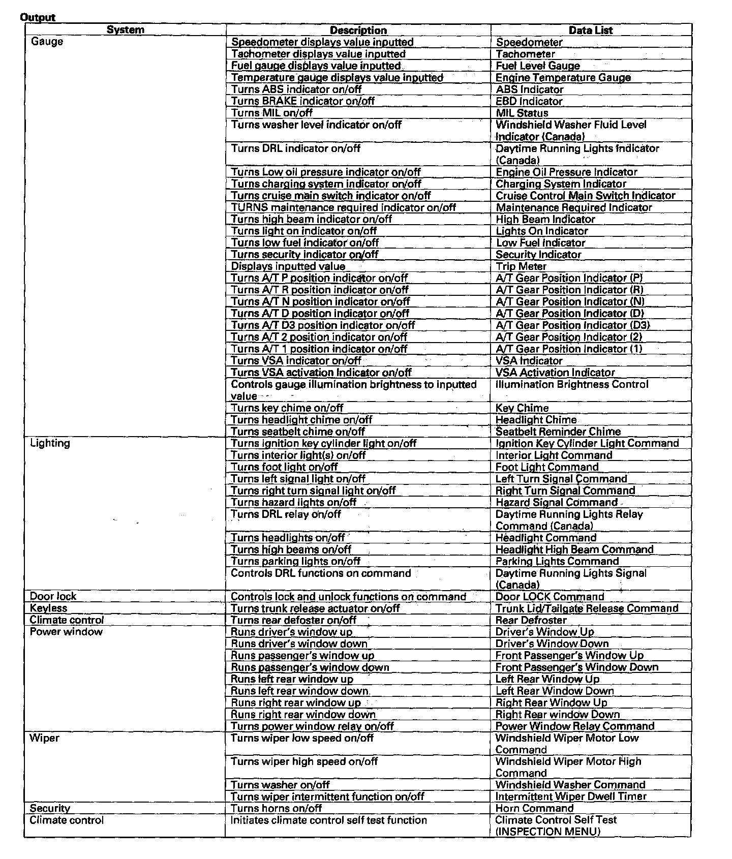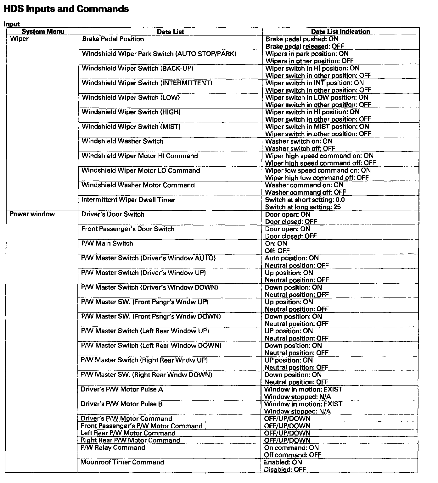 HDS Inputs And Commands - Output: