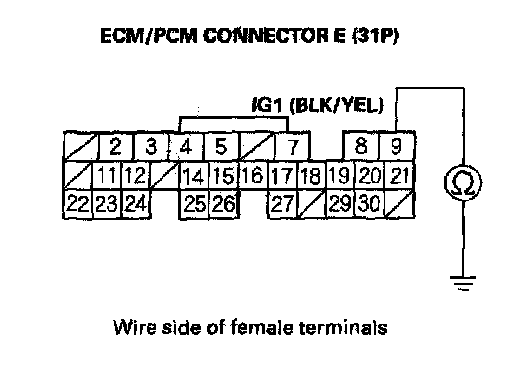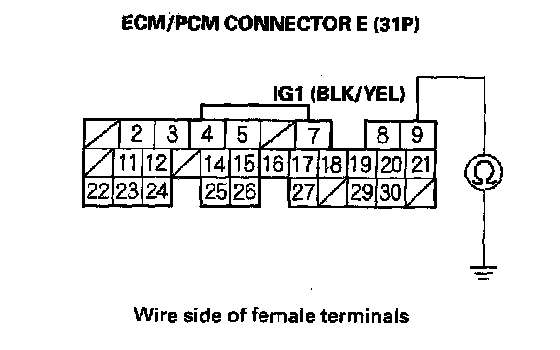 35. Check for continuity between ECM/PCM connector terminal E9 and body ground.