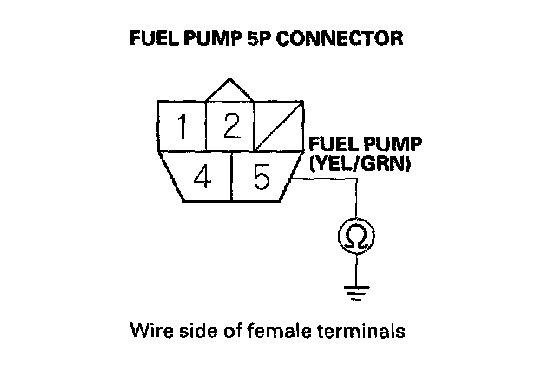 41. Check for continuity between fuel pump 5P connector terminal No. 5 and body ground.