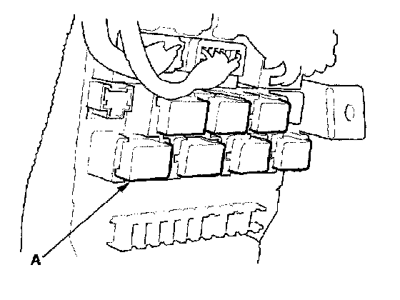 36. Remove the left kick panel, then remove PGM-FI main relay 2 (FUEL PUMP) (A) from the under-dash fuse/relay box.