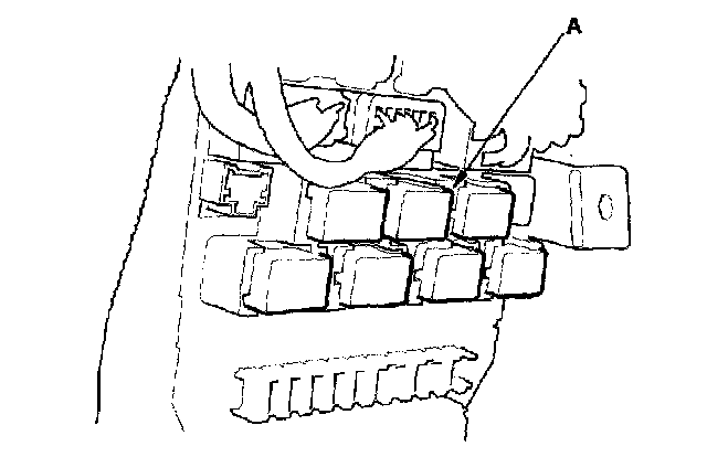 26. Remove the kick panel, then remove PGM-FI main relay 1 (FI MAIN) (A) from the under-dash fuse/relay box.