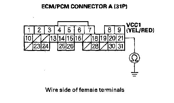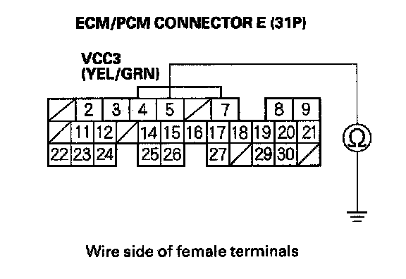 16. Check for continuity between ECM/PCM connector terminal E29 and body ground.
