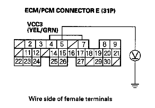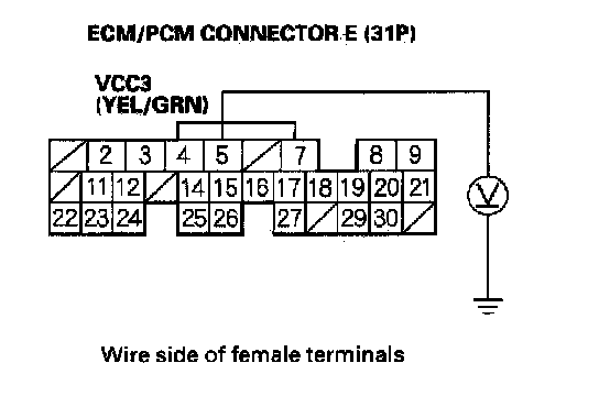 81. Disconnect the FTP sensor 3P connector, and measure voltage between body ground and ECM/PCM connector terminal E5 with the ignition switch ON (II).