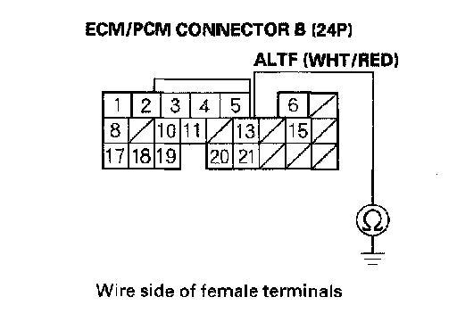 8. Check for continuity between body ground and ECM/PCM connector terminal B13.