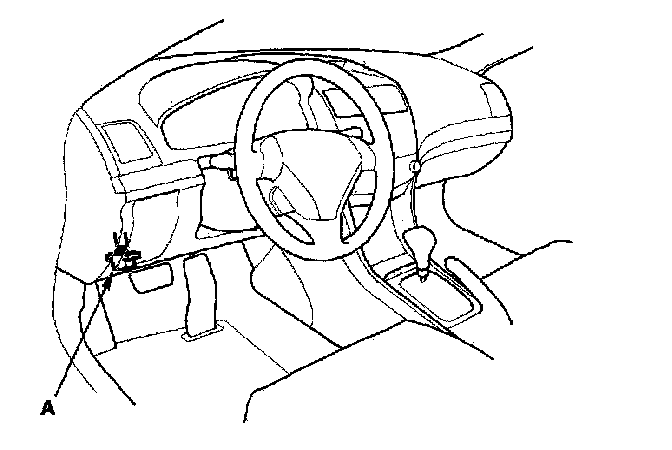 2. If the MIL stays on, connect the HDS to the data link connector (DLC) (A) located under the driver's side of the dashboard.
