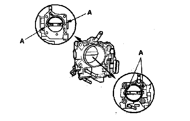- To avoid removing the molybdenum coating, do not clean the bearing area of the throttle shaft (A).