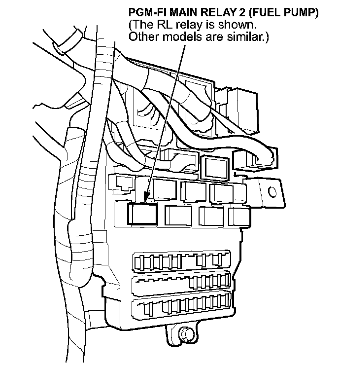 3. Locate PGM-FI Main Relay 2 (Fuel Pump) in the under-dash fuse/relay box. Look at the name printed on the relay.