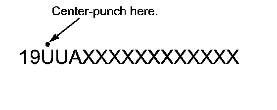 7. Center-punch a completion mark above the third character of the engine compartment VIN.