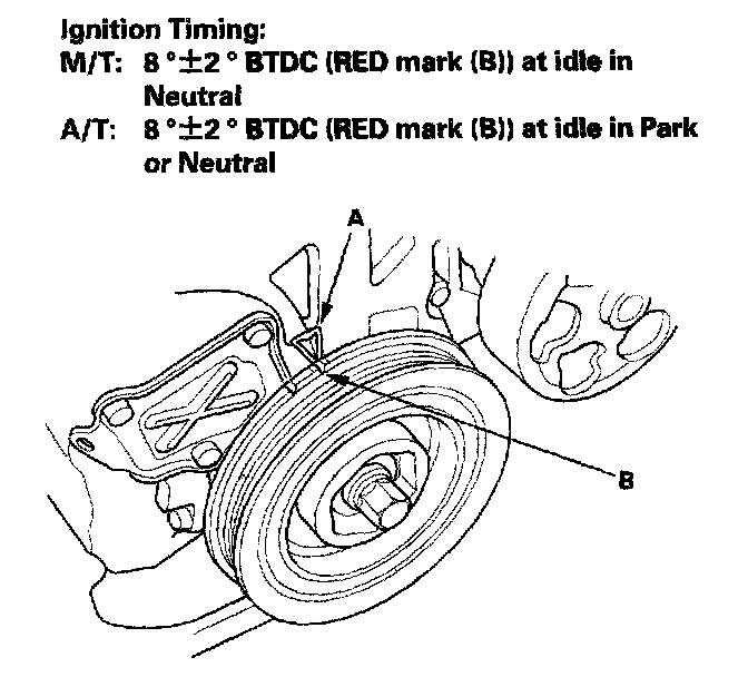 Ignition Timing Inspection1. Connect the Honda Diagnostic System (HDS) to the data link connector (DLC), and check for DTCs. If a DTC is present, diagnose and repair the cause before inspecting the ignition timing.