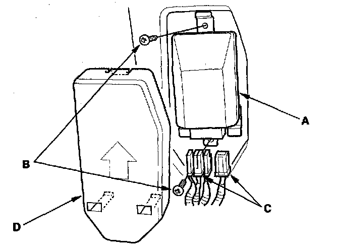 1. Place the new OPDS unit (A) on the seat-back frame Tighten the two screws (B), and connect the OPDS unit harness 8P and sensor connectors (C) to the OPDS unit. Reinstall the cover (D).