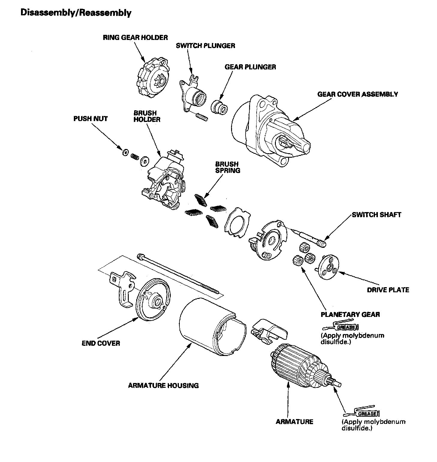 2. Disassemble the starter as shown at the beginning of this procedure.