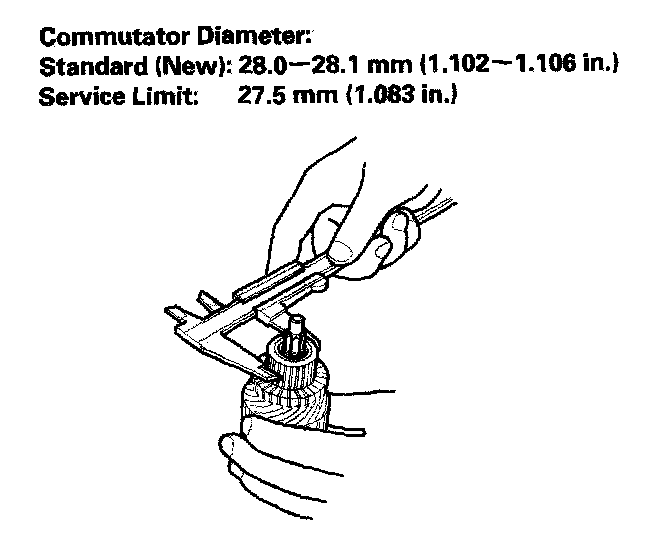5. Check the commutator diameter. If the diameter is below the service limit, replace the armature