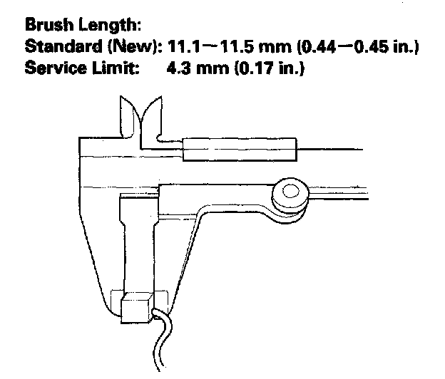 11. Measure the brush length. If it is shorter than the service limit, replace the brush holder assembly.