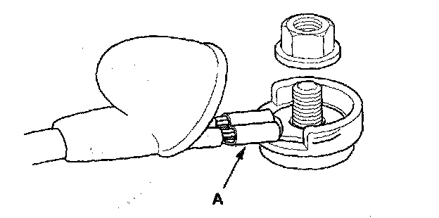8. Install in the reverse order of removal. Make sure the crimped side of the ring terminal (A) is facing out.