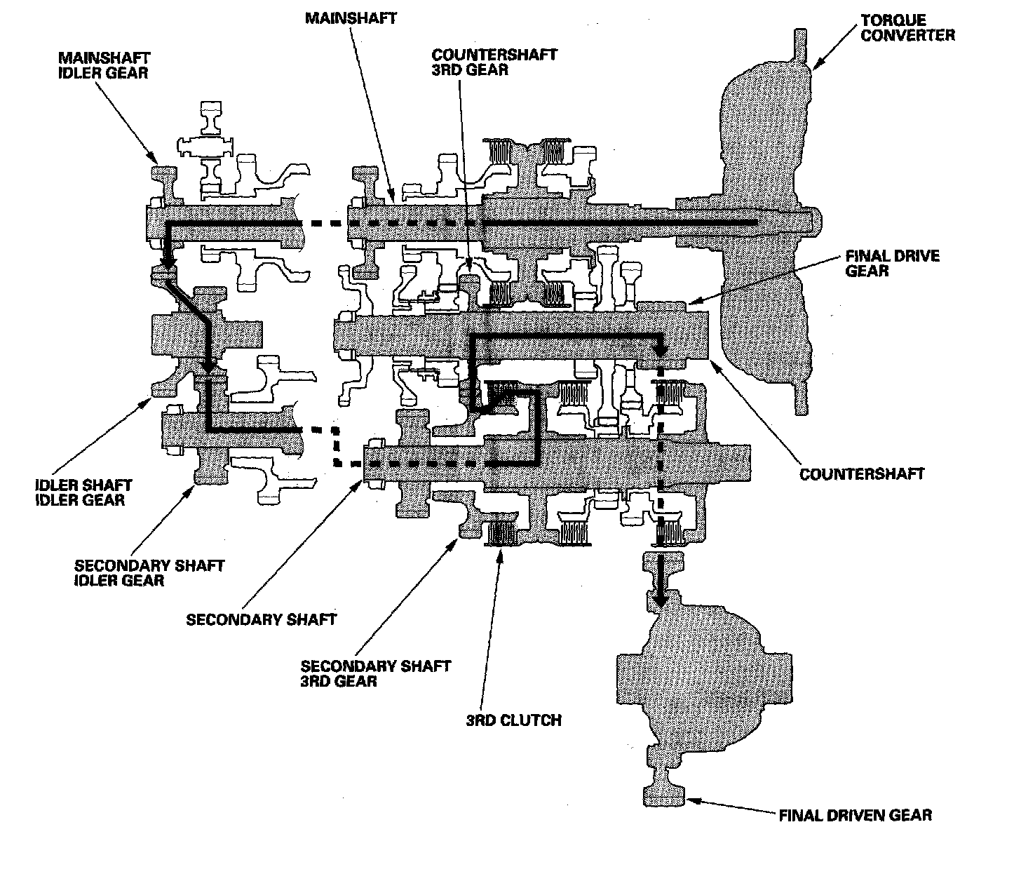 - The mainshaft idler gear drives the secondary shaft via the idler shaft idler gear and secondary shaft idler gear.