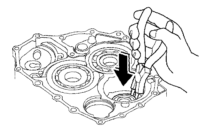 3. Expand the snap ring of the idler gear shaft bearing with the snap ring pliers, then push the bearing out.