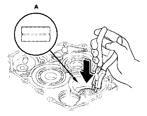 4. Expand the snap ring of the idler gear shaft (A) with the snap ring pliers, and install the bearing partway into the housing.