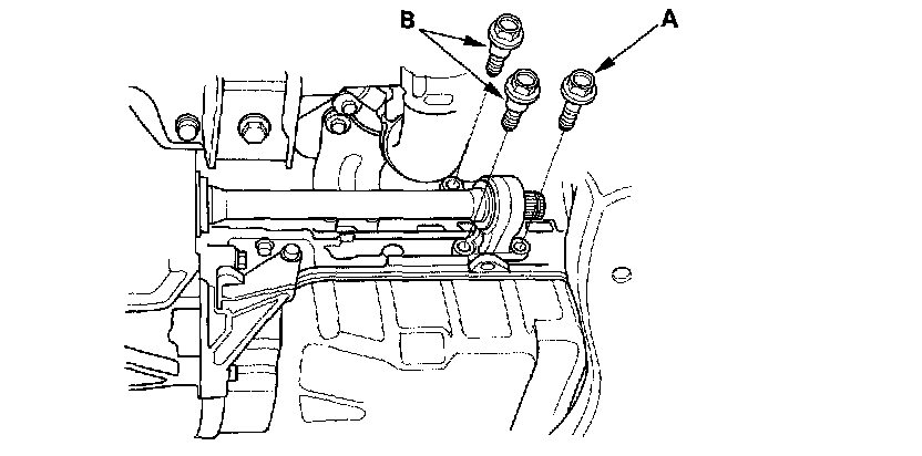 3. Remove the flange bolt (A) and two dowel bolts (B).