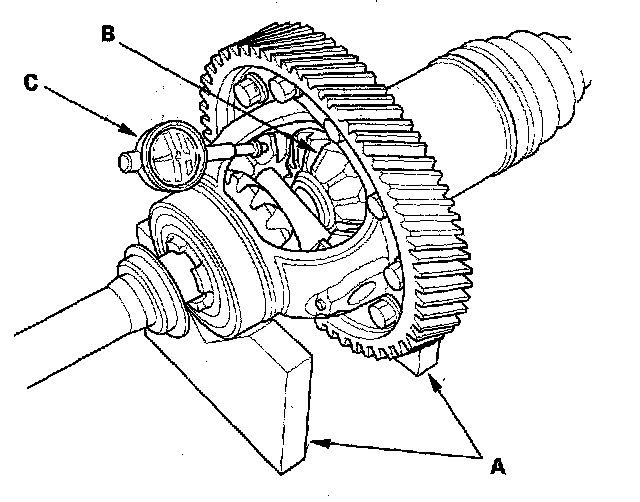 Backlash Inspection1. Place the differential assembly on V-blocks (A), and install both axles.