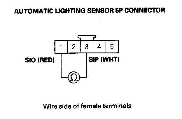 8. Check for continuity between automatic lighting sensor 5P connector terminals No. 1 and No. 3.