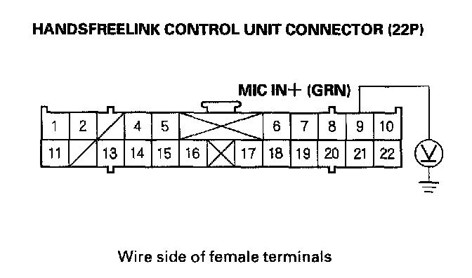 8. Check for voltage between HandsFreeLink control unit the 22P connector terminal No. 9 and body ground.