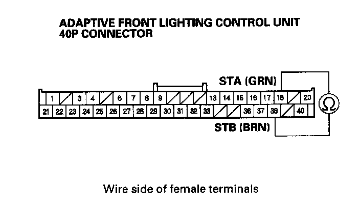 19. Check for continuity between adaptive front lighting control unit 40P connector terminals No. 18 and No. 38.
