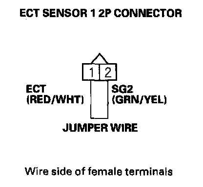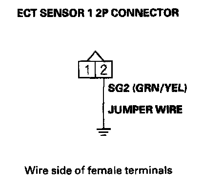 9. Remove the jumper wire from ECT sensor 1 2P connector.
