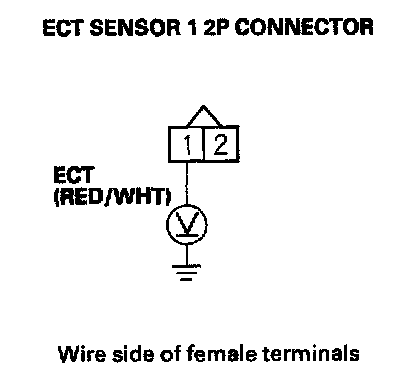 11. Measure voltage between ECT sensor 1 2P connector terminal No. 1 and body ground.