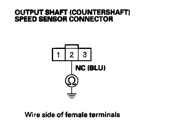 14. Check for continuity between output shaft (countershaft) speed sensor connector terminal No. 2 and body ground.