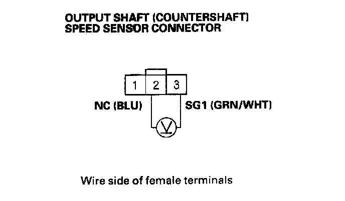 19. Measure the voltage between output shaft (countershaft) speed sensor connector terminals No. 2 and No. 3.