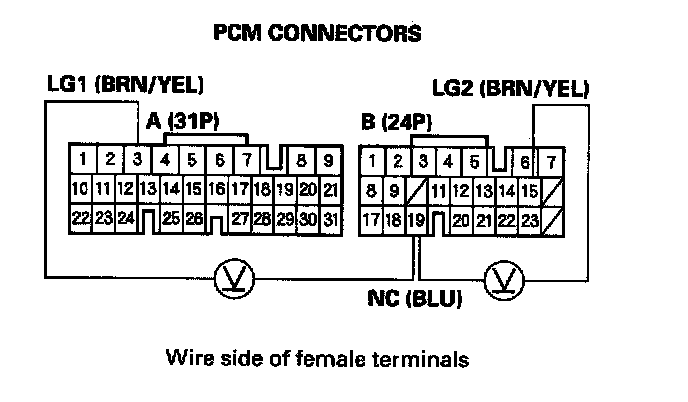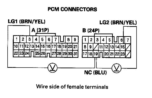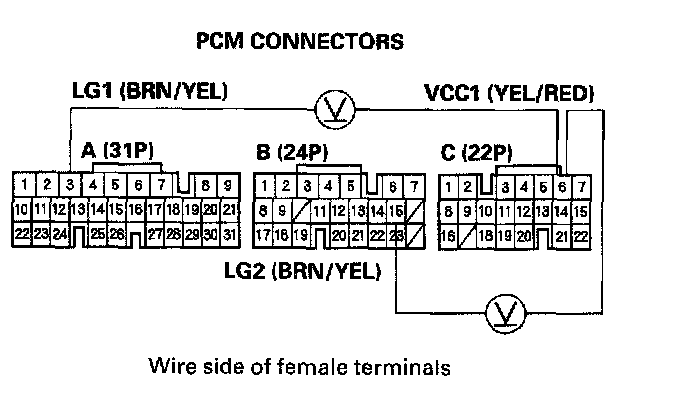 24. Measure the voltage between PCM connector terminals B19 and A3 or B15.
