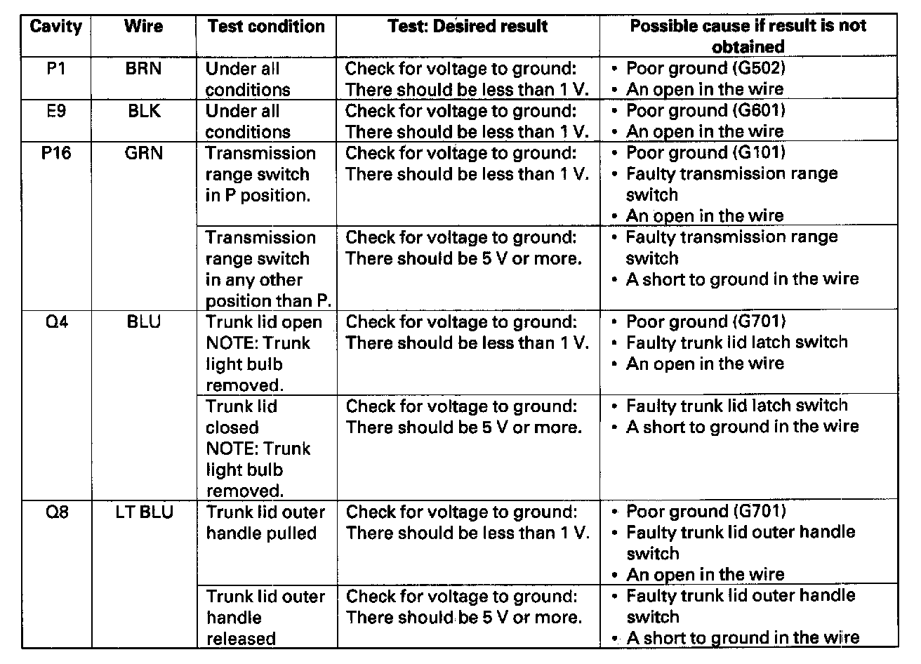 24. Reconnect the connector to the switch, and make these input tests at the connector.