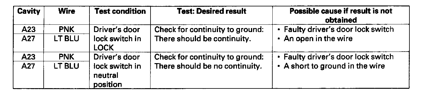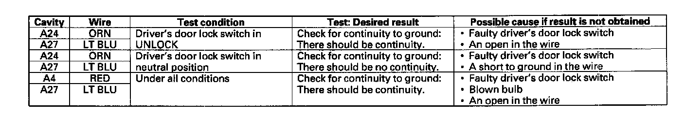 Control Unit Input TestNOTE: Before troubleshooting the keyless entry/security alarm system,