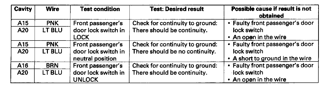 16. Reconnect the connectors to the passenger's MPCS unit, and make these input tests at the connectors.