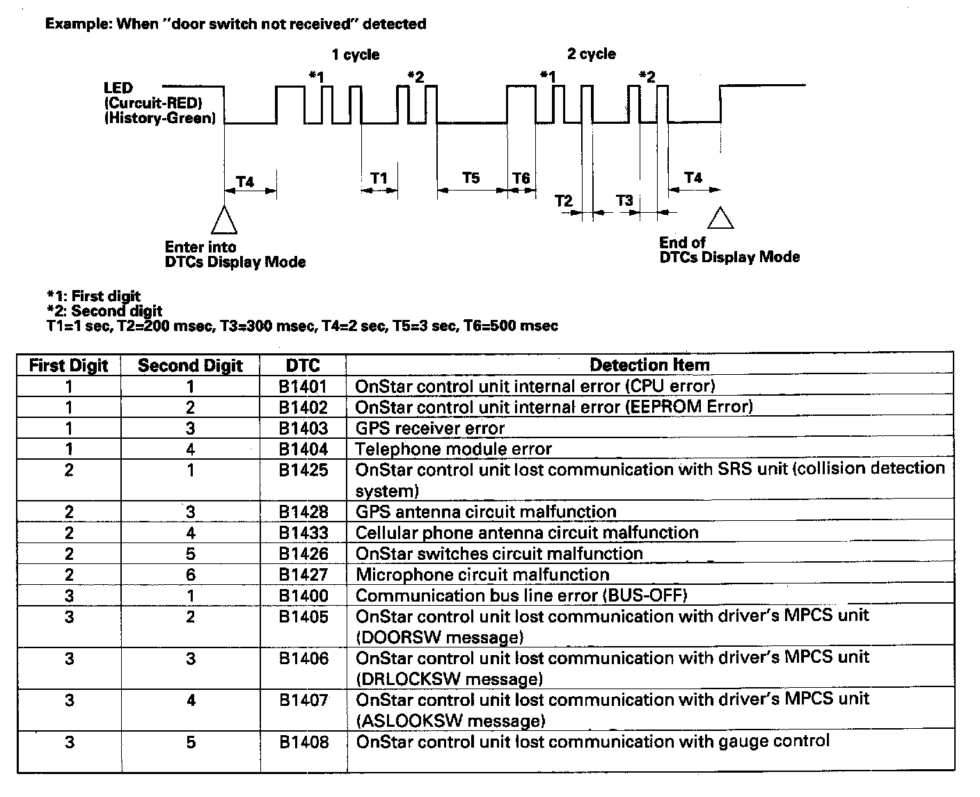 - When the OnStar system enters the self-diagnostic mode, if the OnStar system has current DTCs, OnStar system will flash the red LED to display current DTCs.
