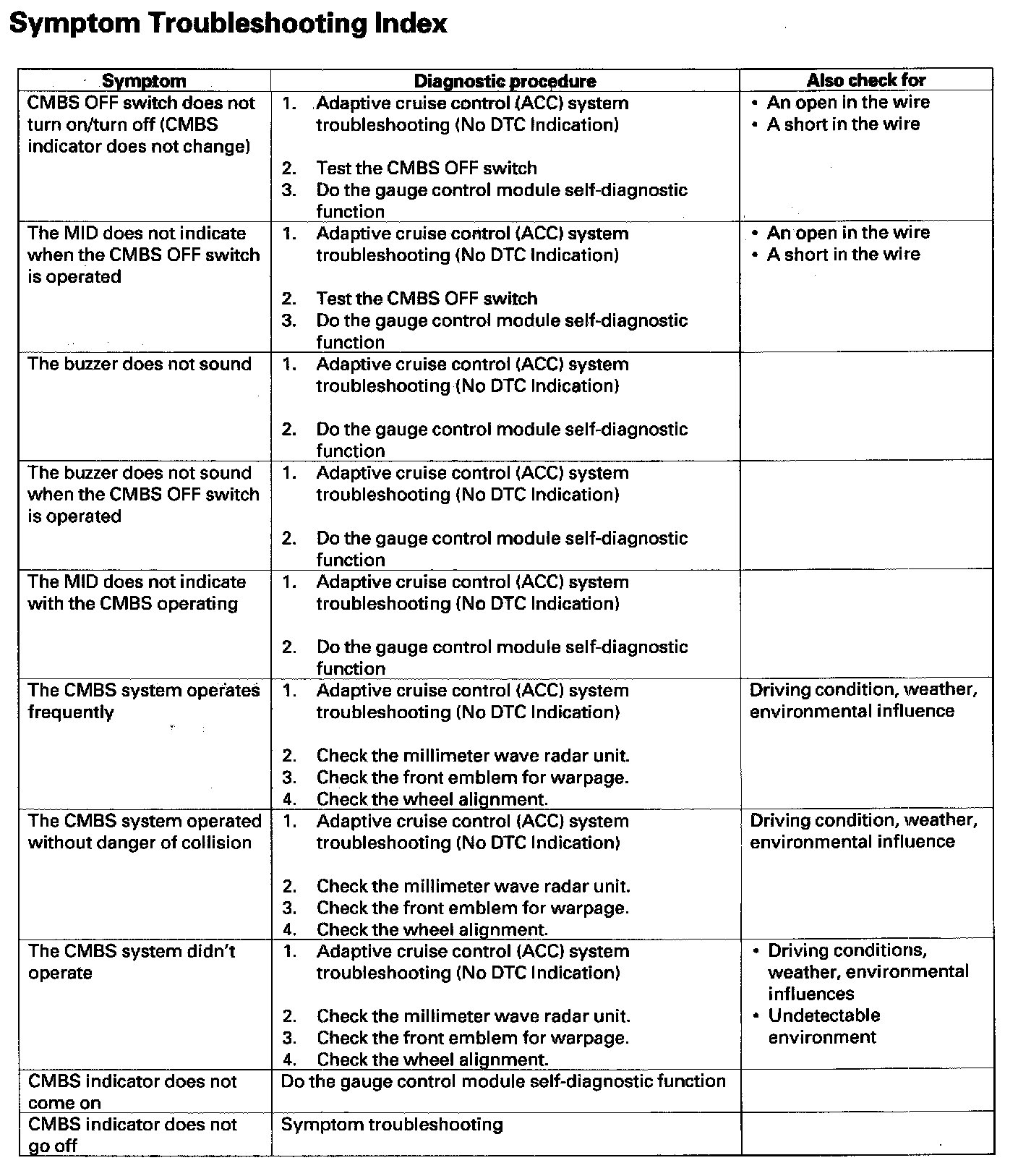 Symptom Troubleshooting Index: