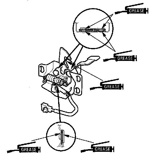 - Apply multipurpose grease to the hood latch as indicated by the arrows.