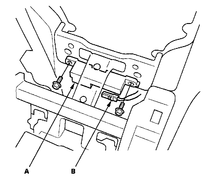 2. Remove the two bolts from the front interior LF antenna (A).
