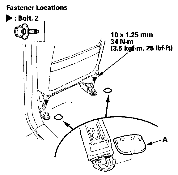 3. Slide the front seat forward fully, and remove the anchor cover (A).