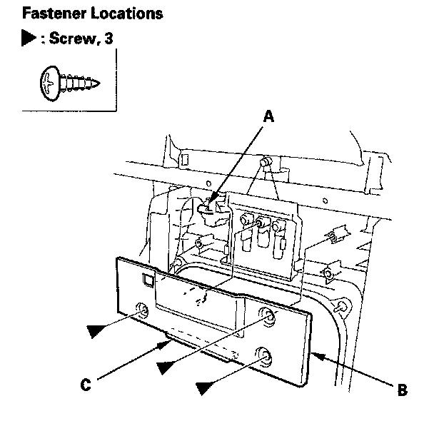 3. Remove the screws, and detach the hook (A), then remove the lock cover (B), and release the hook (C).