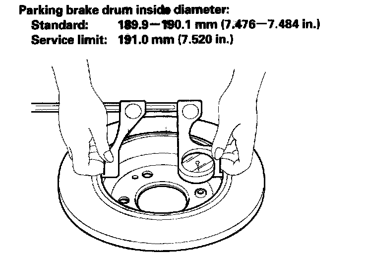 9. If the inside diameter of the parking brake drum is beyond the service limit, replace the brake disc/drum.