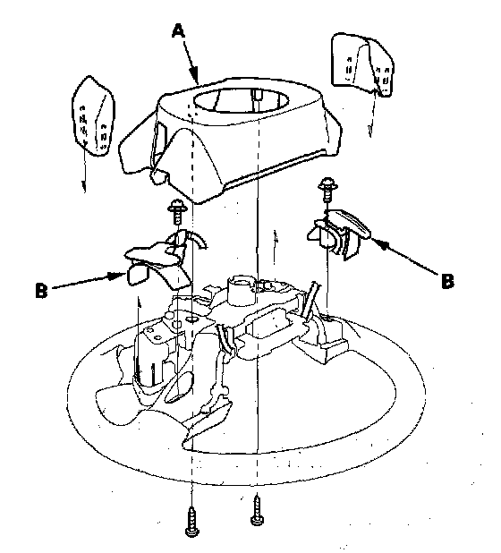 2. Remove the steering wheel rear cover (A) and the paddle shift switches (B).