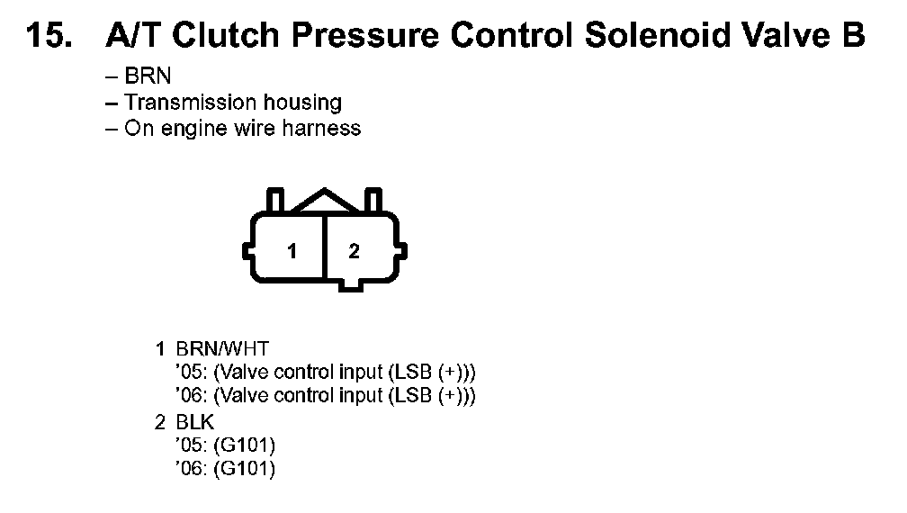 15. A/T Clutch Pressure Control Solenoid Valve B: