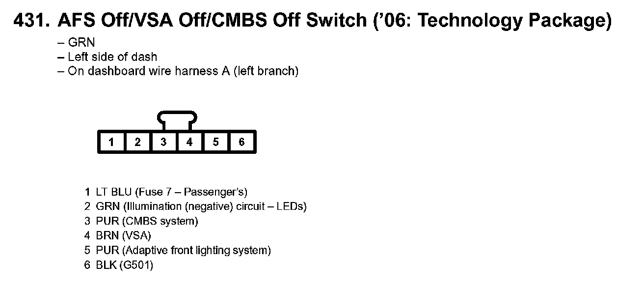 431. AFS Off/VSA Off/CMBS Off Switch ('06: Technology Package):