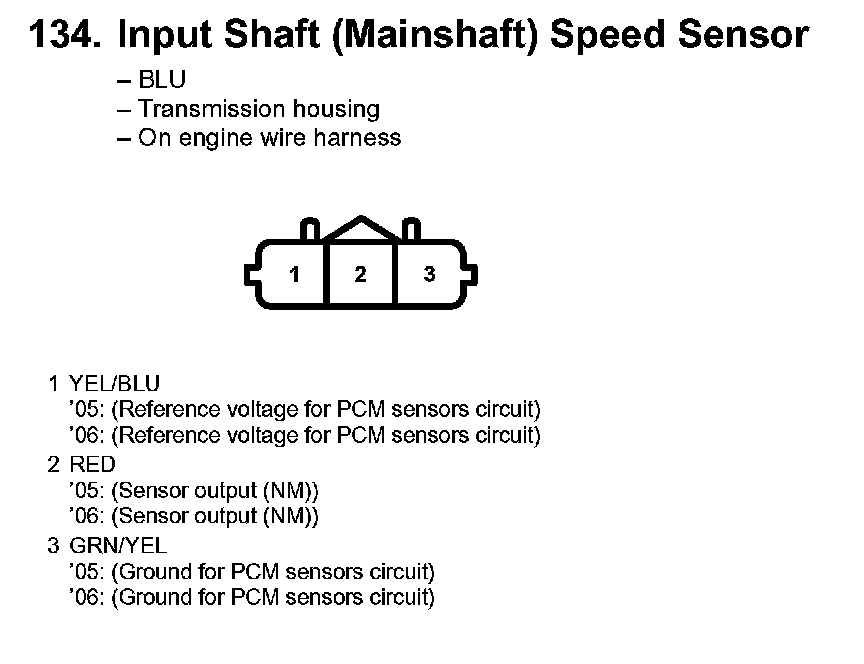 134. Input Shaft (Mainshaft) Speed Sensor: