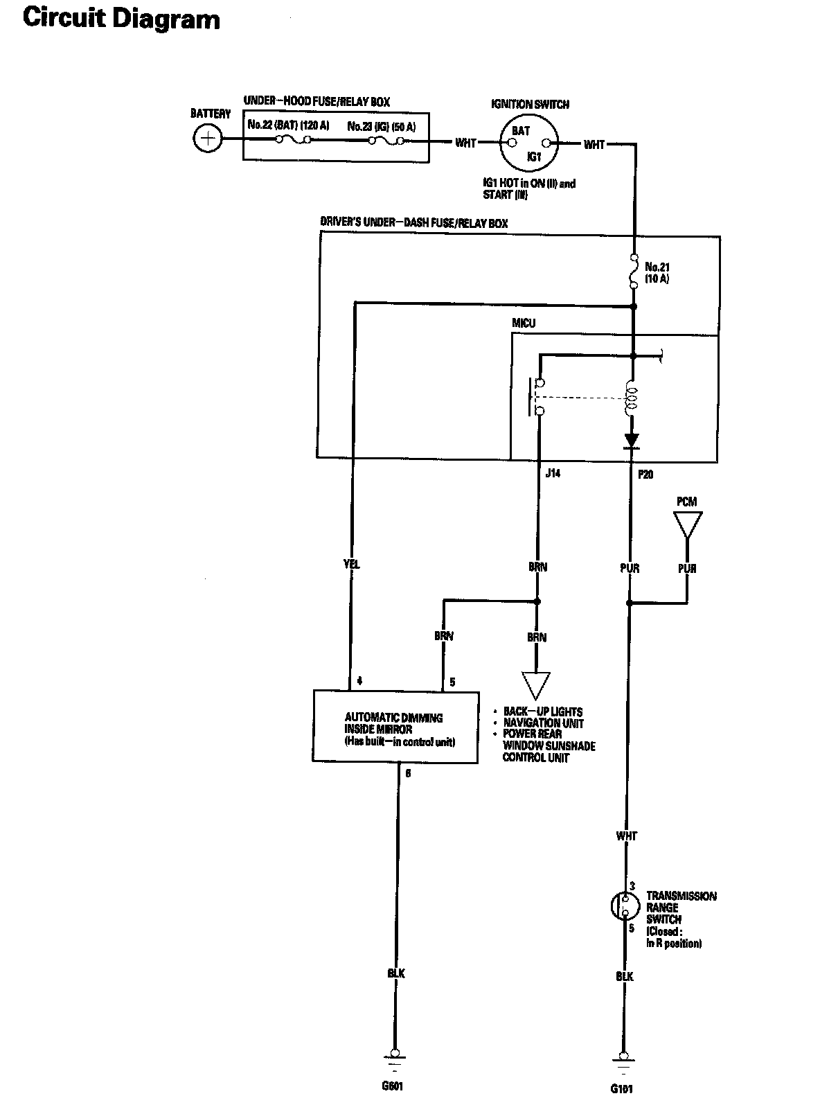 Automatic Dimming Inside Mirror - Circuit Diagram: