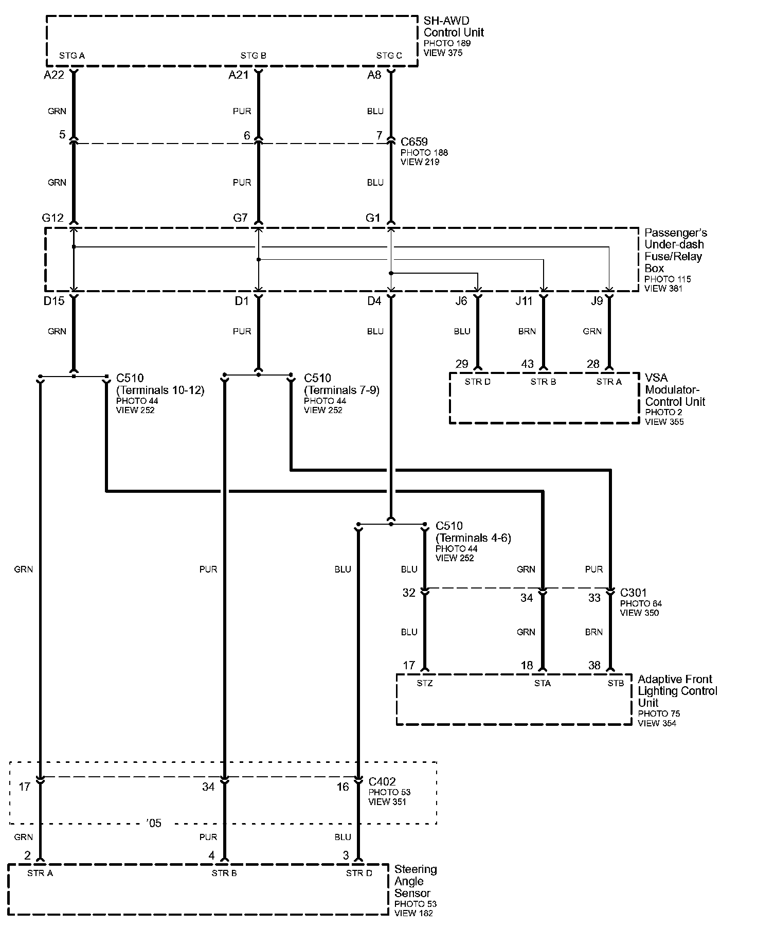 Connector Views: Connector terminal views (references to VIEWS) referred to within these diagrams can be found at Connector Views by View Number. Connector Views By View Number